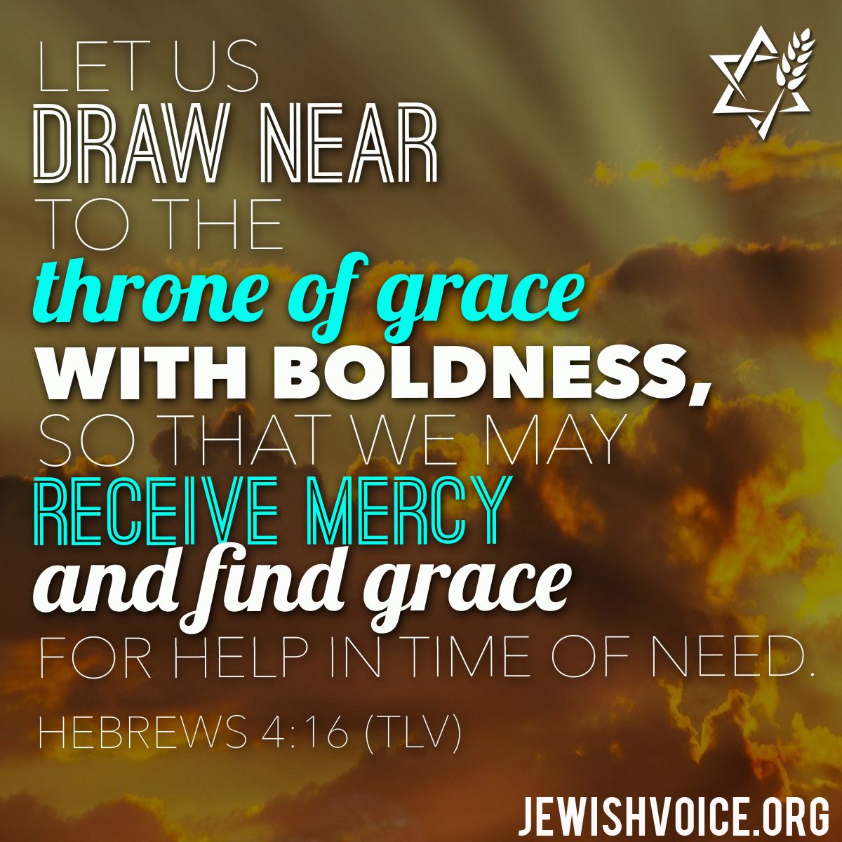 Therefore let us draw near to the throne of grace with boldness, so that we may receive mercy and find grace for help in time of need. Hebrews 4:16 TLV