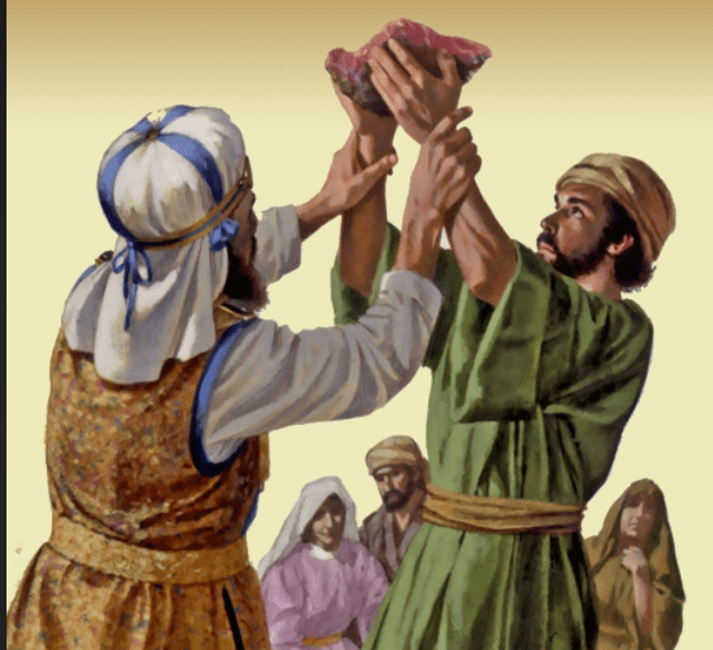 10 The people of Isra’el camped at Gilgal, and they observed Pesachon the fourteenth day of the month, there on the plains of Yericho. 11 The day after Pesach they ate what the land produced, matzah and roasted ears of grain that day. 12 The following day, after they had eaten food produced in the land, the man ended. From then on the people of Isra’el no longer had man; instead, that year, they ate the produce of the land of Kena‘an.