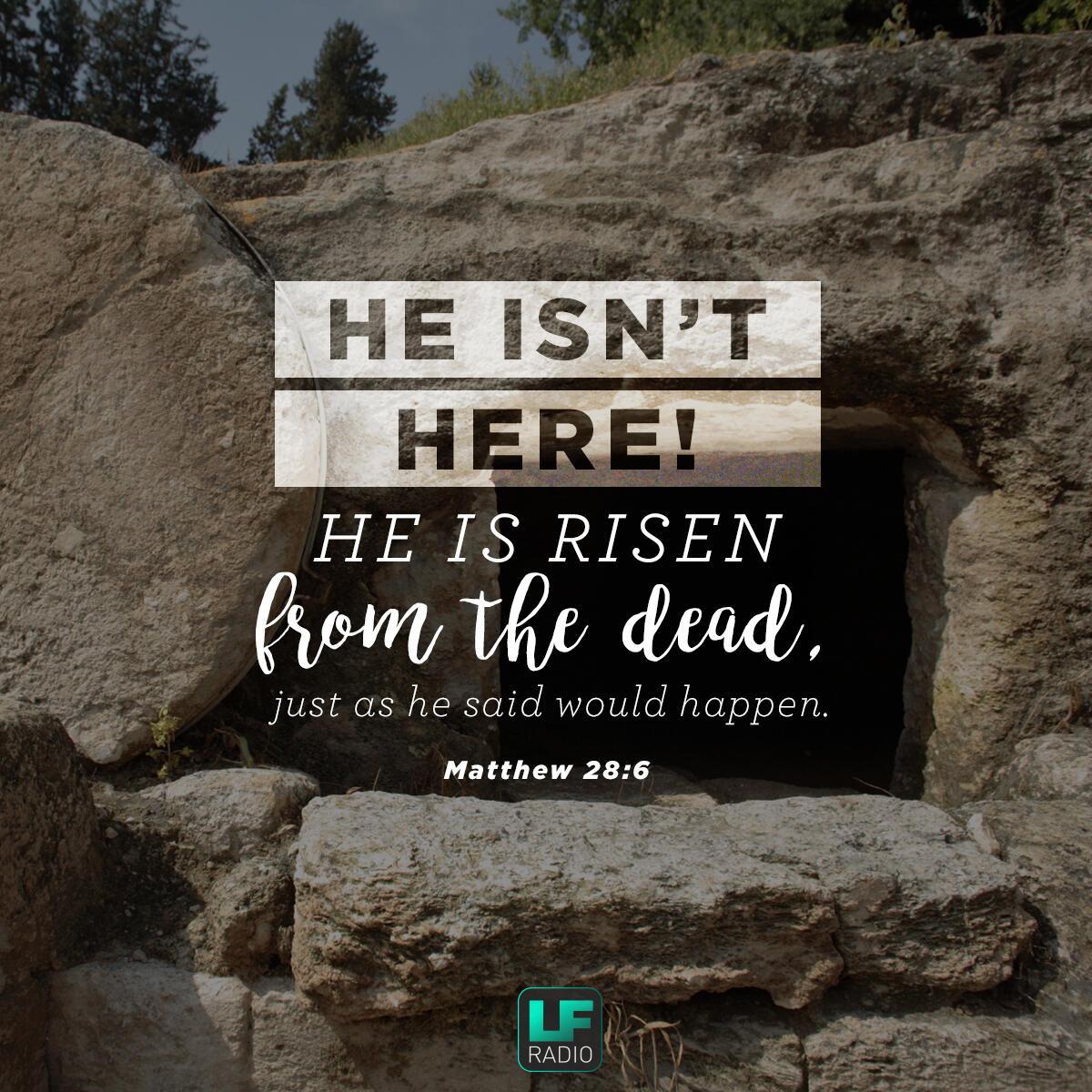 6He is not here; for He is risen, just as He said. Come, see the place where He was lying.