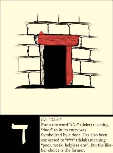 Hebrew have 22 alphabet letters. Daleth is the fourth Hebrew letter of the Aleph-Bet, having the numeric value of four. Dalet דלת means door, doorway, gate, pathway to enter, … we all see Pictogram: