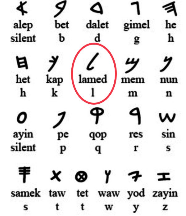 Lamed is the twelfth (12th) letter of the Hebrew alphabet