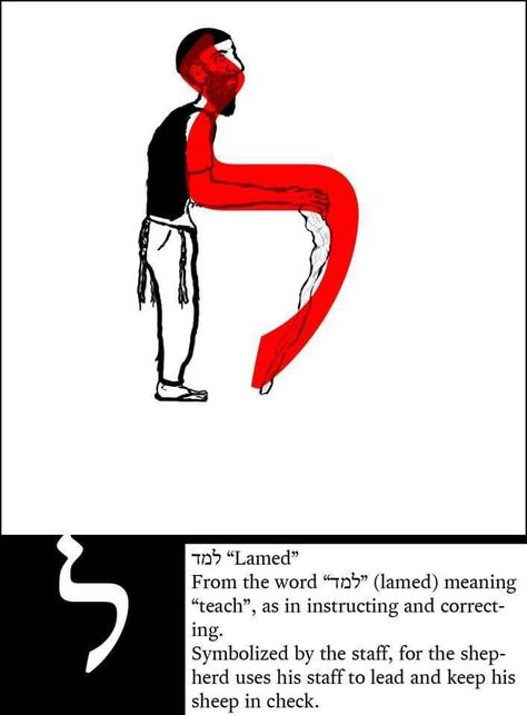 The Hebrew letter lamed is the twelfth letter of the alephbets. Its pictogram is a shepherd’s staff and it points to guidance, teaching and learning. It has a numerical value of thirty. In full, the word lamed is spelt למד (lamed-mem-dalet). It is from the root word lamad which is also spelt למד (lamed-mem-dalet) and it means ‘to learn’, ‘to train for’ and ‘to be trained’. It also means ‘to teach’, ‘to instruct’ and ‘to impart knowledge’. 👈❤️