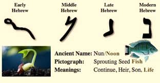 The Hebrew word nun נון meaning “fish” derives from the root נין meaning “to sprout, increase”.