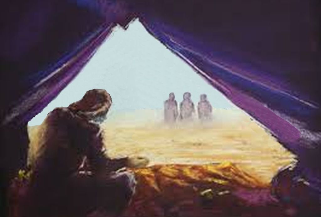 18 Then Adonai appeared to him at Mamre’s large trees while he was sitting in the entrance of his tent during the heat of the day. 2 When he lifted up his eyes to see, suddenly, three men were standing right by him. When he saw them, he ran from the entrance of his tent to meet them and bowed down to the ground. 3 Then he said, “My Lord, if now I have found favor in your eyes, please do not pass by your servant. 4 Please let a little water be brought so you can wash your feet, and make yourselves comfortable under the tree. 5 And let me bring a bit of bread so that you can refresh yourselves—then you can pass on—since you have passed by your servant.