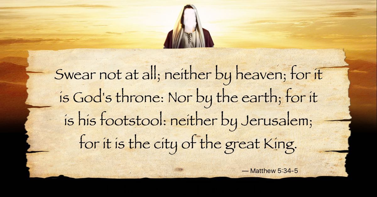 [a] 34 But I tell you, do not swear at all—not by heaven, for it is the throne of God; 35 or by the earth, for it is the footstool of His feet;[b] or by Jerusalem, for it is the city of the Great King.
