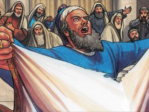 63 Tearing his clothes, the kohen gadol says, “Why do we still need witnesses? 64 You’ve heard the blasphemy. What seems right to you?”