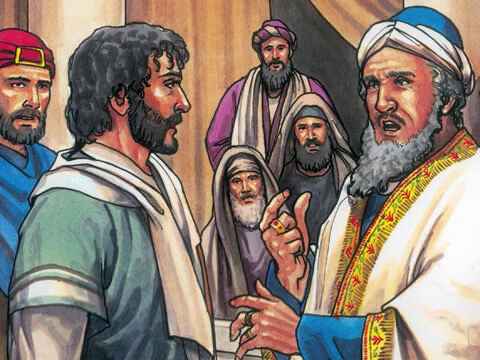 The high priest (Joseph Caiaphas) and his toxic extremist holier than ever legalistic interrogators at Sanhedrin of Jerusalem in the land of Israel: