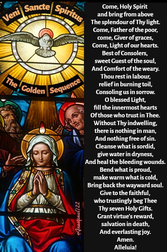 The opening words of the medieval Latin Golden Sequence, βCome Holy Spirit,β sung before the gospel on Pentecost.