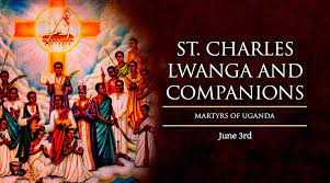 Please click Saint Charles Lwanga was martyred on June 3, 1886, at the age of 26, along with 12 other Catholics and 11 Anglicans, for refusing to renounce their faith and to comply with the corrupt and unchaste demands of King Mwanga of Uganda. King Mwanga was a violent ruler and pedophile with a predilection for the young boys and men who served him as pages and attendants.