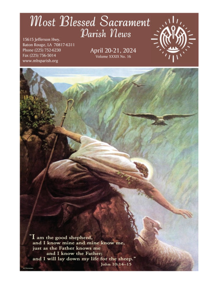 Today I read newsletter βFourth Sunday of Easterβ from Most Blessed Sacrament Catholic Church in Baton Rouge, Louisiana. Please click April 21. π€πππ₯ποΈπΏπ
