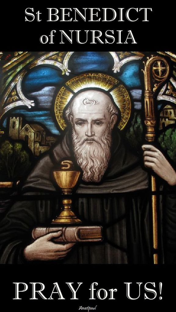 As we honor this important figure in Church and world history, reflect on his humble beginnings. He witnessed the immoralities of his day and fled from those temptations to embrace a life of holiness. At that time, it would have been difficult for him to comprehend the influence he would have had on all of Europe and, in fact, upon the whole world for many centuries to come. Reflect on the fact that God also calls you to flee from sin and embrace a life of holiness. When that happens, God can do great things through you in ways you may never comprehend. Follow the example of Saint Benedict and commit yourself to holy daily living, and leave it up to God to use you as He wills.
